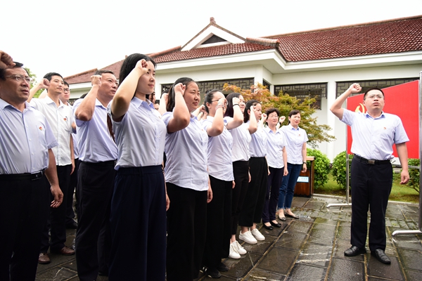 下午,在李克农故居,钱总带领全体党员重温了入党誓词。在渡江战役纪念馆,一件件陈列的历史文献,一幅幅革命烈士的照片,一个个感人至深的革命故事,一段段珍贵的影像资料,让全体党员重回到那段跌宕起伏、波澜壮阔的革命岁月,亲身感受中国共产党艰苦卓绝的奋斗史和辉煌历程,接受了一次党史党性教育和精神洗礼。