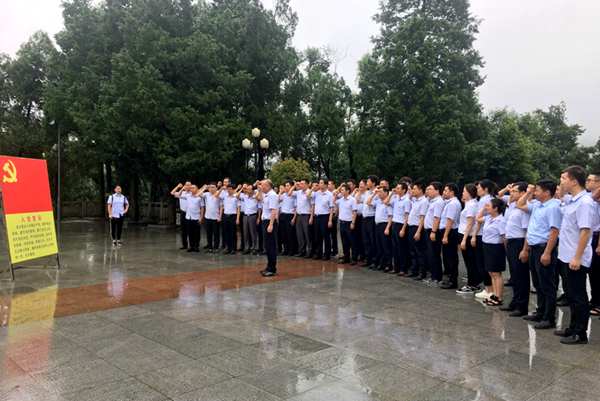 下午,大家冒着细雨来到金寨县红军广场,向革命烈士敬献了花篮。在巍峨的革命烈士纪念塔下,面对鲜艳的党旗,公司党委委员、总工程师彭申凯带领全体党员一起重温了入党誓词。