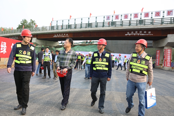 10月17日下午,中国公路学会2018标准化年会代表到芜合改扩建02标项目进行观摩交流,芜合高速改扩建项目办主任于春江、公司副总经理杜海峰等陪同。