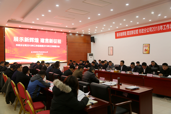 1月31日,市政分公司召开年度总结暨2019年工作计划讨论会。分公司领导班子、后勤职能部门、各项目经理及党支部负责人60余人共聚一堂,展示成果,建言发展。公司党委委员、副总经理任杰,总经理助理、人力资源部经理沈壮,党委办公室主任李静波应邀到会指导。