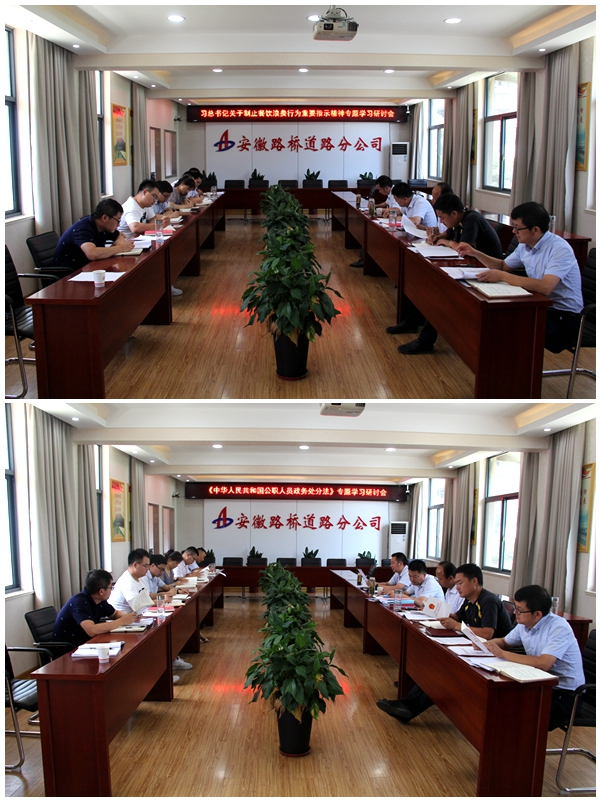 8月15日上午,道路分公司党总支召开专题学习研讨会,深入学习贯彻落实习近平总书记关于制止餐饮浪费的重要指示精神和《中华人民共和国公职人员政务处分法》,分公司领导班子、总支委员及后勤部门负责人参加学习并结合实际开展研讨。