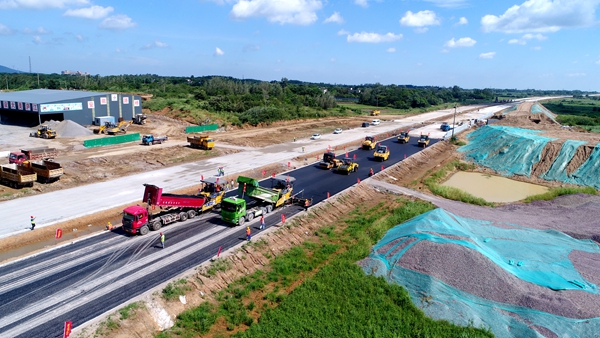 截止目前,项目已完成路基水稳摊铺7.97千米 、沥青摊铺4千米、钢结构制作2600吨、箱梁125片、系梁193道、盖梁106座,为完成年度产值目标奠定了基础。