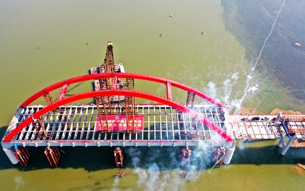 浍河新春起飞虹---固蚌高速02标浍河特大桥主桥顺利合龙