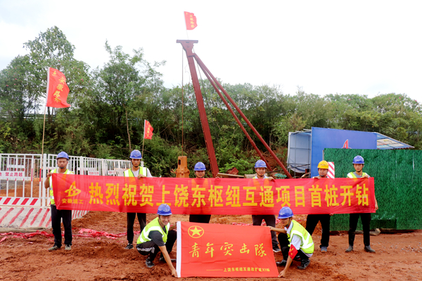 汲取智慧力量解难题促发展。上饶东枢纽互通项目进场伊始恰逢党史学习教育开展,项目部坚持将党史学习教育与生产经营相结合,将学习成效积极转化为破解发展难题的动力,推动党史学习教育走深走实。围绕业主“高起点、高标准、高效率”的驻地建设要求,支部党员建立落实“文化建设、形象提升、效率提升”等方面包保工作“清单”,实施全天候盯控、多点观摩学习以及严格进度过程管控,扎实推进驻地建设,提前20天完成了建设任务。在工程建设中,围绕难点和重要节点,组建“青年突击队”,青年党员带头加班加点,攻坚首根桩基开钻,克服了前期人员紧缺、地质环境复杂和征地难度大等实际难题,顺利拉开了桥梁工程施工的序幕。