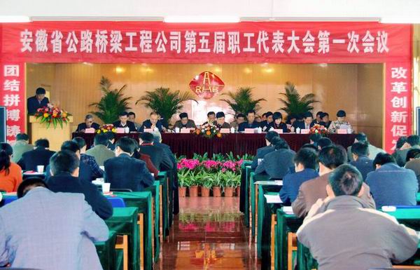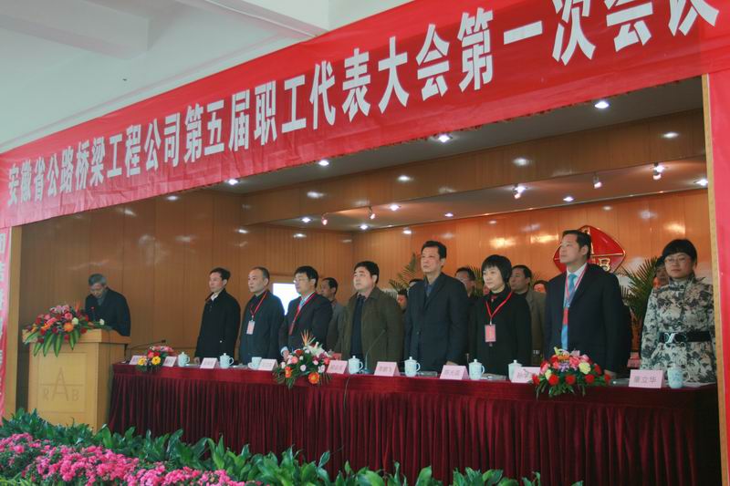 8:45,在庄严的国歌声中,第五届职工代表大会第一次会议正式开幕。公司总经理汪卫东向大会作了题为《统一思想  坚定信心  为实现安徽路桥的新崛起而奋斗》的工作报告。汪总在报告中指出,这次会议,是在当前国家扩大内需、加大基础设施建设的特殊环境下,是在集团公司对当前经济形势科学研判和正确部署下,是在路桥公司谋求新崛起的关键时刻召开的一次十分重要的会议。
