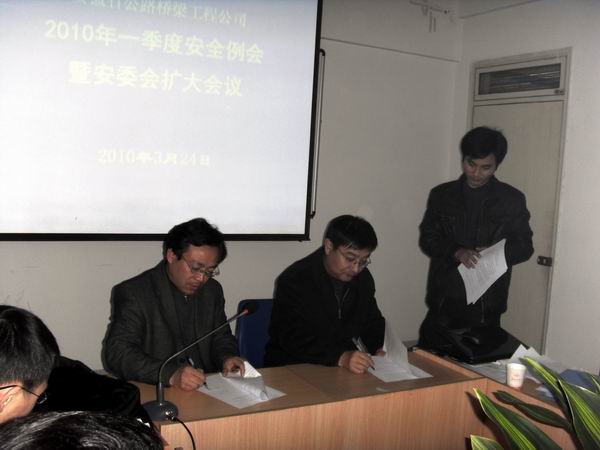 首先,安全生产管理部传达了集团公司2009年四季度安委会扩大会议精神及《安委会议事规则》,安委会成员讨论了公司《项目安全管理责任考核暂行办法》及《2010年公司安全管理工作计划》。