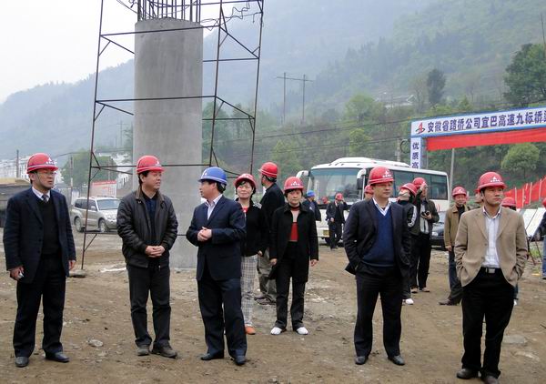 418下午,集团公司副董事长李长斌、集团公司总经理助理、海外公司总经理吴康、集团公司总经理助理、九华房地产公司总经理杨斌、安徽省建筑机械有限公司总经理张卫东一行莅临我湖北宜巴高速09标考察指导工作,公司总经理汪卫东、党委书记陈光磊陪同考察。