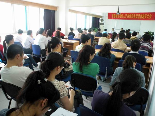 528下午三点,公司深入开展创先争优活动动员大会在四楼会议室召开,公司领导班子成员、所属各党总支、党支部在肥党员、预备党员共计50余人参加了大会,会议由公司副总经理、深入开展创先争优活动领导小组副组长彭申凯同志主持。