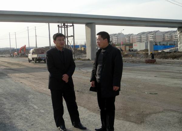 318下午,公司总经理汪卫东到市政方兴大道项目施工现场检查指导工作,我部项目经理钱申春陪同检查。