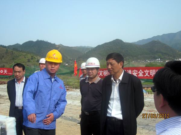 下午15:00,在龙南县、全南县领导、赣州高速公司总经理温扬汉、大广高速龙杨段项目办主任刘伟胜等相关领导的陪同下,刘琮一行抵达我标江口大桥施工现场。一下车,刘琮便与我标项目经理罗权亲切握手并交谈。交谈中,罗权向刘琮简要汇报了我标整体施工情况。其间,刘琮就施工进度、资金调配、年底通车等问题细心询问,罗权表示,在各级领导的关怀与指导下,我标在建员工一直发扬着敬业、开拓、团结、奉献的安徽路桥精神,规范项目管理,紧跟施工进度,狠抓安全生产,严把质量控制关,积极做好工程建设,争取在年底给赣州人民交出一份满意的答卷,为赣州经济发展贡献绵薄之力。谈及安徽路桥,刘琮高度赞扬,他指出透过大广高速B1标的项目建设,足见安徽路桥在高速施工建设中管理规范,施工精细,质量过硬,是赣州高速建设中的守信用、保质量的放心企业,是赣州高速建设的好伙伴。