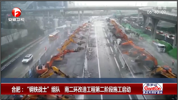 人民网【新春走基层】专栏报道了该项目大年三十工地不打烊,参建人员持续奋战在施工一线。中国日报海外版《End of the road》、合肥日报《“钢铁战队”首啃“硬骨头”》报道了公司第二次对老旧匝道桥拆除工作的场景。安徽卫视超级新闻场等媒体以《“钢铁战士”组队 南二环改造工程第二阶段施工启动》报道了南二环改造工程顺利进入第二阶段施工节点的讯息。学习强国合肥学习平台、澎湃新闻以《合肥:畅通南二环 铆足干劲 大干正酣》为题,合肥新闻联播以《“步履不停”保畅通 建设按下“快进键”》《过年坚守南二环 来年道路早畅通》为题,报道了春节期间该项目施工现场干出的“加速度”。抖音等自媒体平台以短视频形式展示了数十台机械同时作业的震撼场面,关注热度超过3百万,安徽路桥速度得到合肥市民的再次点赞。