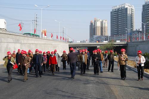 下午三点左右,在项目经理李建成的引导下,观摩团全体成员来到展牌前,听取了项目工程的介绍,详细了解了公司近几年施工的大型精品工程。随后,观摩团沿北二环下穿路面至下穿桥下,观看桥梁施工的成品工程,最后至项目颖河路沥青摊铺现场,对正在施工的项目进行了实地察看。在颖河路摊铺沥青现场,当观摩团得知项目部为了确保工程质量,采用优质的进口的SMA型沥青时,无不交口称赞。