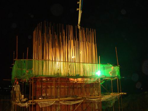 六安淠望路大桥至2月份开工以来,项目部边施工边筹备,克服前期阴雨天气的不利因素,创造施工条件,确保主墩连续施工,引桥全面开工。在全体员工的努力下,大家不分昼夜,争分夺秒抢时间,特别是主墩承台施工,连续3昼夜施工不间断,使承台较原计划提前6天完成,为主墩出水争取了时间。目前全桥桩基已全部完成,引桥正在进行立柱和系梁施工,同步准备箱梁现浇的准备工作,主桥墩身有序进行。