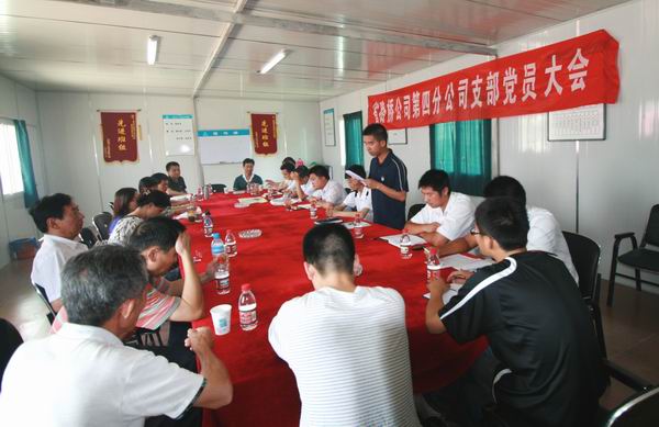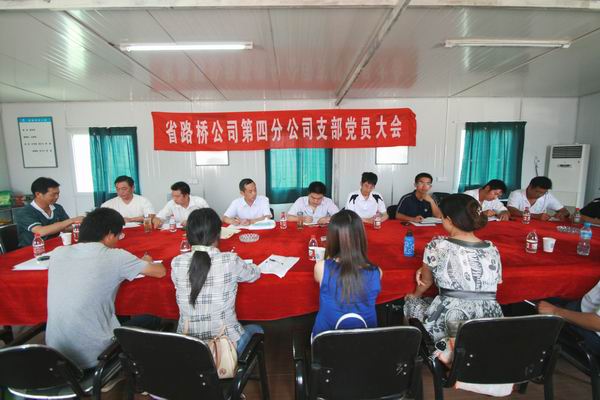 7月8日,第四分公司在绩黄高速02标项目会议室,召开了2009年度支部党员大会。会议讨论通过二名预备党员转正、二名发展对象吸收为中共预备党员,参加会议来自各项目工地与后勤党员19名,其中正式党员15名。会前支部征求了六名因工作没有来参加会议的正式党员意见,他们表示同意郑冀东、代伟预备党员按期转正;同意凤尔飞、蔡少影吸收为预备党员,共计有效票为21票,会议符合党员发展程序,召开有效。会议由支部书记汪家富主持。