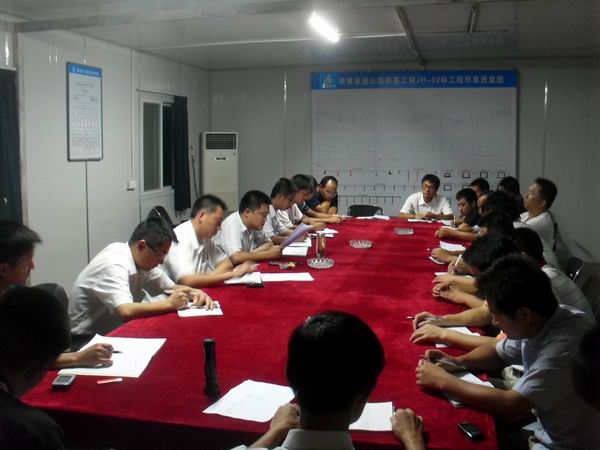 8月9号晚7点半,绩黄高速02标项目部在项目会议室召开生产经营分析会议。项目经理张庆书,项目副经理王守武、凤尔飞,项目总工王秋华,各部门负责人及成员参加了会议。
