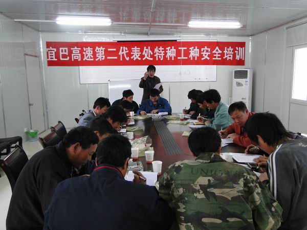 为了提高项目部特种作业人员的职业技能和文化知识,3月27日下午,在宜巴09标举办了特种工种培训,随后还对特殊工种工人进行了相应的考试。此次培训得到了第二代表处的高度重视,特别邀请了专门的培训教师亲自授课,共有特殊工种人员十余人参加了培训。