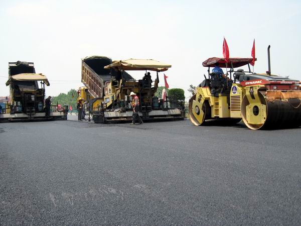 在项目部沥青拌合场地,记者们在梁局长及项目部经理王炜生同志的带领下,参观了橡胶沥青的拌合设备,了解了整个沥青混凝土的拌合过程,并进行了实地拍摄。