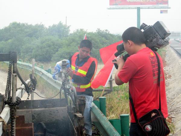 68,在宣城市交通局副局长、广祠高速改建项目办主任梁世华同志的带领下,在项目办副主任黄利宏同志和谢凯同志的陪同下,宣城市电视台的记者到我项目施工现场进行采访。