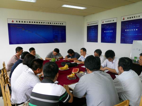 716,在公司总经理助理兼项目管理部经理傅月斌的带领下,由安全生产部经理黄劲松、核算审计部经理张红、人力资源部经理沈壮、总工程师办公室副主任罗孝荣、项目管理部副经理邢俊、物资设备部胡永明等组成的考评小组来到我芜宣路面养护项目对我部进行了详细的工作考核。