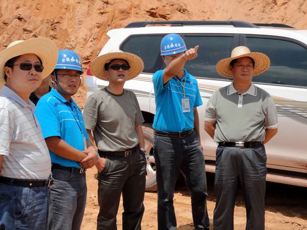 719,骄阳似火,江西省交通厅许润龙副厅长、厅基建处王继东处长、厅安监处熊华武处长、厅质检站栾建平站长、彭东领副站长在瑞寻项目办钱主任和代表处叶代表的陪同下,带领内业组和外业组冒着高温酷暑莅临我A7标 ,分别对我标段的全线施工现场、内业资料、规范化施工等方面进行全面的检查指导。