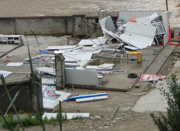 由于项目部及时通知人员撤离,所以没有造成人员伤亡。灾情发生后,项目经理王远胜带领安全部部长万和国赶赴现场了解损失情况。王经理组织工区长、班组长召开现场会议,要求灾情面前“人命大于天”,无论是面对洪水、塌方还是龙卷风,首先要确保人员安全;其次对山区的恶劣天气和自然灾害的危害性要估计得更加充分,安全工作要更加仔细;最后要求大家鼓足信心,清理现场、修复损坏设备,争取七天内恢复施工。