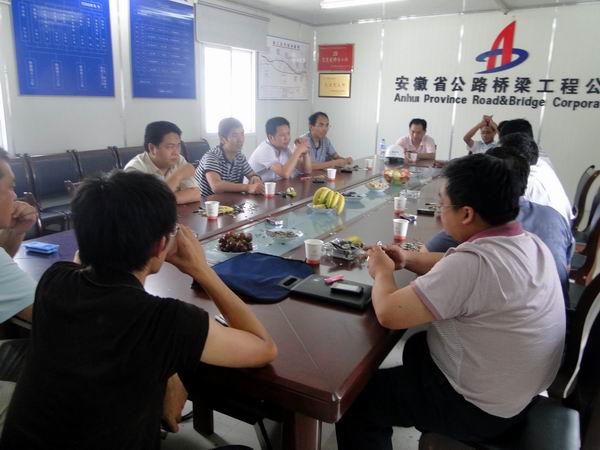 检查组一行首先来到项目部召开会议听取我部工作汇报,并进行内业资料检查。项目经理王远胜向检查组一行汇报了我部抗击715洪灾和灾后重建工作开展情况。总工吴昊就我部桥梁施工质量控制体系、流程和施工进度进行汇报。试验室、质检部分别向检查组汇报了我部试验工作、质量控制和内业资料完善等情况。