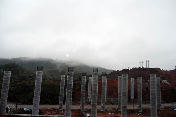 大广B1标盘石分离立交桥墩柱浇筑全部完成 发布时间:2011年03月25日 来源:大广B1标 发布人: 作者:蒋诗军 浏览:3564次 3月19日,大广B1标盘石分离立交桥施工区域雨雾交织,但施工现场却是热火朝天。随着3#-4、3#-5桥墩立柱的浇筑完毕,大广B1标盘石分离立交桥墩柱浇筑任务全部完成。 盘石分离立交桥横跨省道龙小线,并且2#、3#墩又临近道路,施工难度较大,但在项目部科学合理的安排调度下,墩柱施工有序开展,并顺利完成。