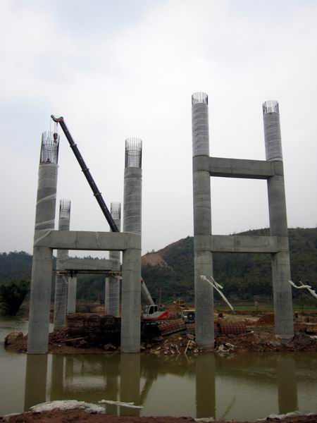 大广B1标最高墩柱成功浇筑 发布时间:2011年03月28日 来源:大广B1标 发布人: 作者:蒋诗军 浏览:3847次 3月25日,大广高速B1标江口大桥左幅10#墩柱成功浇筑。左幅10#墩位高 34.73 米,是标段内也是全线最高墩柱。 江口大桥左幅10#墩柱的成功浇筑,标志着B1标段内下部结构施工正式进入高潮阶段,同时吹响了“大干三个月,打好第一阶段攻坚战”的战斗号角。