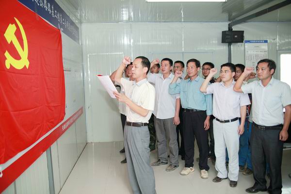 项目经理余跃号召全体党员要充分发挥党员的先锋模范作用,带领项目全体员工一起克服目前的各种困难,提高工作的主动性和积极性,同心协力,完成公司和项目业主制定的年底完成主体工程施工的任务。