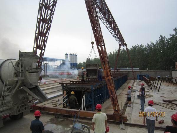 徐明11标第一片箱梁预制成功 发布时间:2011年08月02日 来源:徐明11标 发布人: 作者:李发林 浏览:3301次 8月1日凌晨3点,在项目部的精心组织和全体参建人员的共同努力下,徐明高速路11标第一片箱梁预制成功,标志着该项目部大规模预制箱梁的序幕已经拉开。