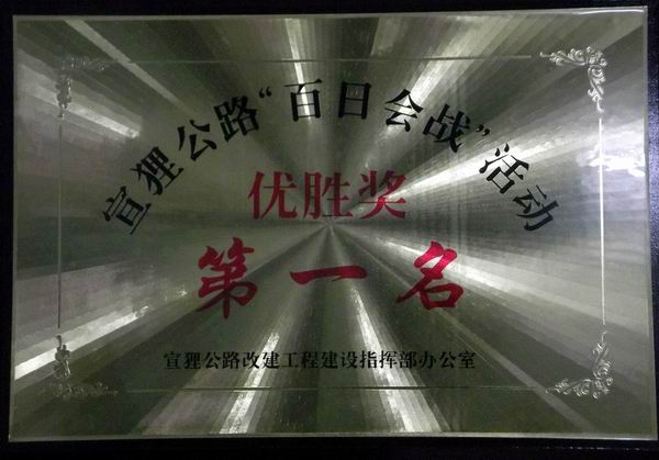 宣狸改建L5标在宣狸路“百日会战”中荣获优胜奖第一名
