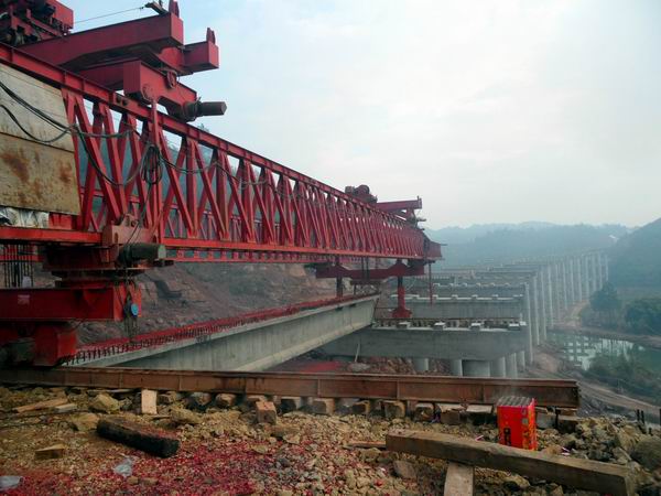 江口大桥全长540m,共有T梁252片,是我标梁板安装的第8座桥,是标段内12座桥中施工难度最大的桥。为保证全桥标准化施工,我标项目部科学规划、精心组织,在安装前作了一次系统的复测和数据收集。项目将江口大桥作为2012年施工建设中的控制性施工点,在确保安全和质量的前提下,稳步推进施工进度,势把江口大桥打造成继桃江大桥后安徽路桥大广B1标的第二个形象窗口。