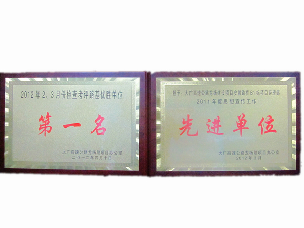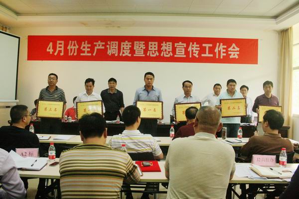 江西大广B1标喜获双奖 发布时间:2012年04月12日 来源:江西大广B1标 发布人: 作者:熊祖发 浏览:3093次 2012年4月11日下午,大广项目办召开了4月份生产调度暨思想宣传工作会议,会议通报了2、3月度综合评比情况,并对2011年度参建单位宣传工作进行总结。会上,我部喜获全线综合评比路基项目第一名好成绩,同时还荣获2011年度项目思想宣传先进单位称号。业主单位赣州高速公司总经理温杨汉亲自给项目经理罗权颁奖并予以表扬。 好成绩的取得是项目全员共同努力的结果,更是公司强有力支持和帮扶的结果。我部全体员工将以此次评比为契机,扎实做好后续各项工作,再接再厉,努力打造江西第一条山区六车道高速公路精品工程,维护好安徽路桥在江西市场的品牌形象。