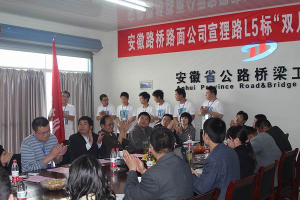 副总经理陈智代表公司向全体参会人员宣读了皖路桥路面办〔2012〕5号文件——《关于开展宣狸改建工程L5标“双月会战”劳动竞赛的通知》;路面公司工程部长王小杰、总经济师袁青岭分别详细阐述了活动的实施方案和具体奖励措施。